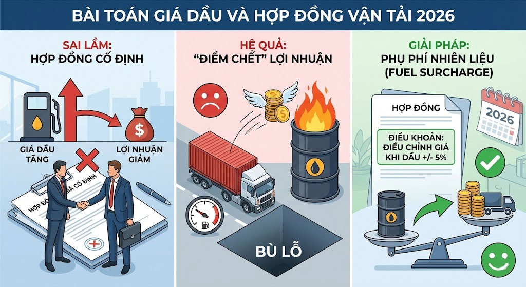 Sai lầm lớn nhất của nhiều chủ xe trong năm 2026 là ký kết các hợp đồng dài hạn với giá cước cố định mà không có điều khoản bù đắp nhiên liệu.