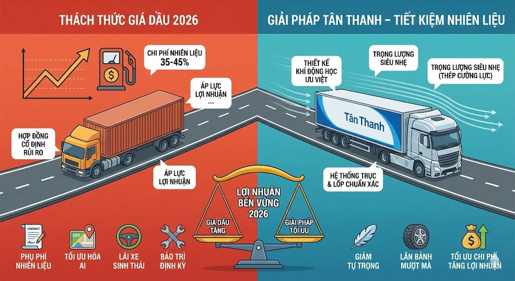 Giá dầu có thể tăng, nhưng nếu bạn quản trị tốt từ công nghệ, con người đến phương tiện, doanh nghiệp của bạn vẫn sẽ đứng vững. Hãy để rơ mooc Tân Thanh đồng hành cùng bạn trong chiến dịch tối ưu hóa chi phí, biến những thách thức của năm 2026 thành cơ hội để dẫn đầu thị trường vận tải.