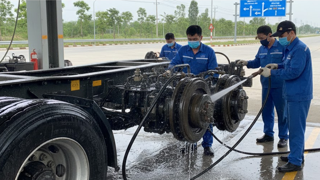 Nếu không có quy trình bảo trì và sửa chữa xe moóc kịp thời sau khi đi qua vùng ngập mặn, hệ thống an toàn của xe sẽ bị đe dọa nghiêm trọng. Bài viết này sẽ hướng dẫn chi tiết quy trình vệ sinh và bảo dưỡng để bảo vệ “xương sống” của xe moóc trước sự tấn công của muối mặn.
