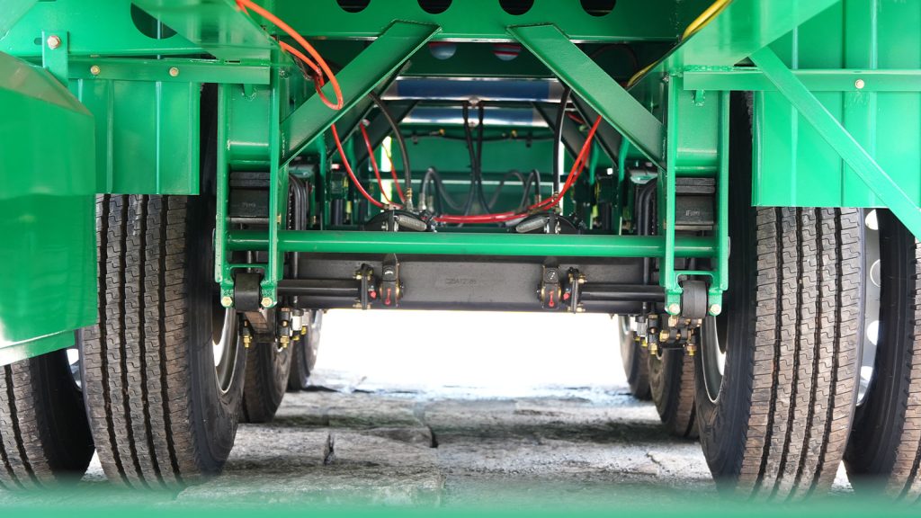 Khi trục đầu tiên được nâng lên, chiều dài cơ sở thực tế tiếp đất của mooc ngắn lại. Điều này giúp tài xế dễ dàng xoay trở xe trong không gian hẹp, các góc cua gắt hoặc trong kho bãi chật chội mà không lo bánh xe bị “sàng” hay làm hỏng mặt đường bãi.