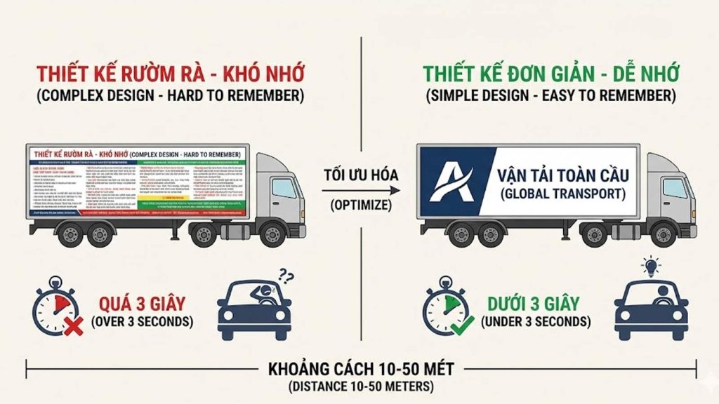 Tuy nhiên, thiết kế trên xe tải nặng không giống như thiết kế trên bao bì hay website. Nó đòi hỏi một sự tính toán khoa học về thị giác, màu sắc và bố cục để đảm bảo rằng thông điệp của bạn có thể “đọc” được chỉ trong vài giây khi xe đang di chuyển ở tốc độ cao.