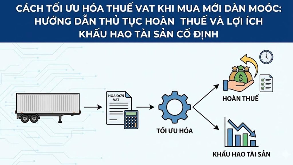 Trong kinh doanh vận tải quy mô doanh nghiệp, việc đầu tư mua mới sơ mi rơ moóc (SMRM) không chỉ là câu chuyện tăng năng lực chở hàng mà còn là một bài toán tối ưu hóa thuế. Nếu biết cách vận dụng đúng các quy định về thuế Giá trị gia tăng (VAT) và khấu hao tài sản cố định (TSCĐ), doanh nghiệp có thể tiết kiệm được một khoản tiền khổng lồ, giúp giảm giá thành dịch vụ và tăng sức cạnh tranh trên thị trường.