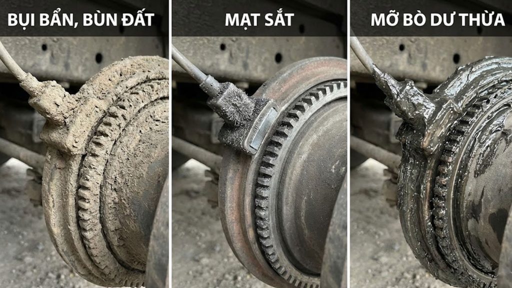 - Bụi bẩn và bùn đất: Khi xe chạy đường sình lầy, bùn đất bám vào khe hở giữa đầu dò và vòng răng làm nhiễu tín hiệu.