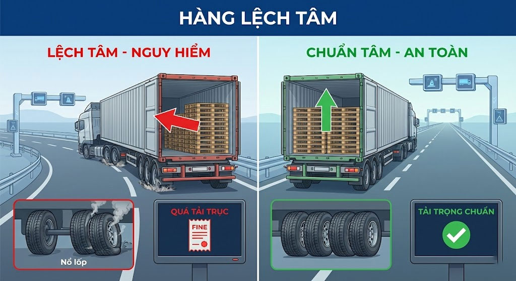 Năm 2026, với hệ thống giám sát tải trọng trục tự động dày đặc, lỗi hàng lệch tâm đã trở thành nỗi ám ảnh kinh hoàng.