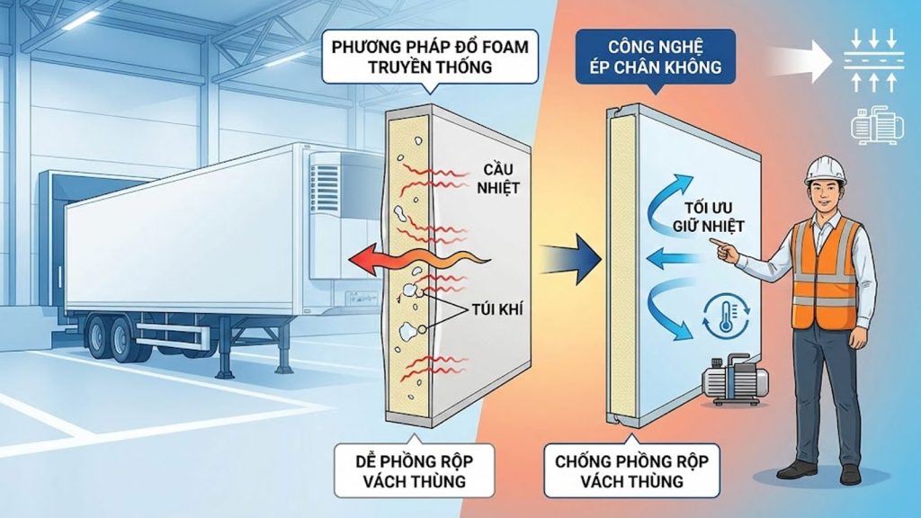 Công nghệ ép chân không tấm Panel chính là “chìa khóa vàng” giúp nâng tầm chất lượng thùng lạnh. Nó không chỉ đơn thuần là một phương pháp sản xuất, mà là giải pháp bảo vệ tài sản và uy tín của doanh nghiệp vận tải. Tại Tân Thanh, chúng tôi luôn ưu tiên những công nghệ tiên tiến nhất để đảm bảo mỗi chiếc thùng lạnh xuất xưởng đều có khả năng chịu tải và giữ nhiệt vượt trội nhất thị trường.