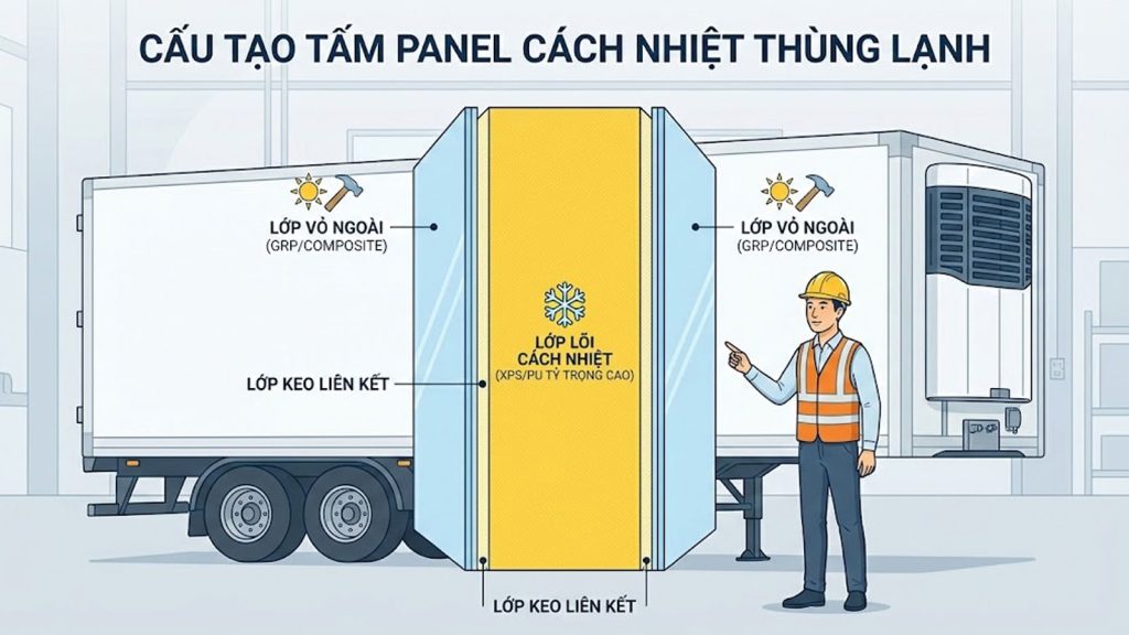 Trong ngành vận tải lạnh, việc duy trì nhiệt độ ổn định bên trong thùng xe không chỉ là yêu cầu kỹ thuật mà còn là yếu tố sống còn bảo đảm chất lượng hàng hóa. Để làm được điều này, tấm panel cách nhiệt đóng vai trò quyết định. Tuy nhiên, không phải tấm panel nào cũng giống nhau.