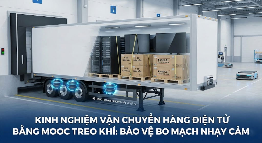 Giải pháp tối ưu duy nhất để chinh phục các đơn hàng này chính là sử dụng sơ mi rơ mooc hệ thống treo khí (treo bóng hơi). Dưới đây là những kinh nghiệm thực chiến giúp bạn vận chuyển hàng điện tử an toàn tuyệt đối.