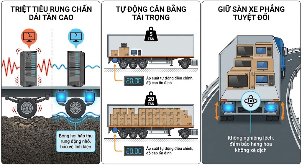 1. Tại sao hệ thống treo khí (Air Suspension) là “cứu cánh” cho hàng điện tử?
