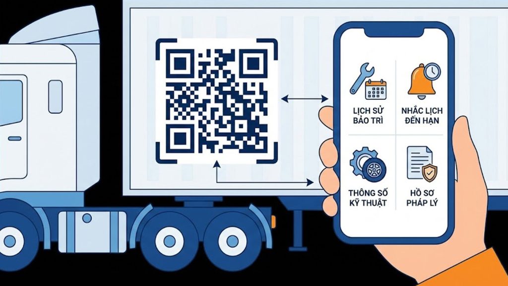 Một trong những vấn đề lớn nhất của các đội xe là tài xế thường không biết chiếc sơ mi rơ moóc mình đang kéo đã đến hạn bảo trì hay chưa (đặc biệt là trong mô hình “moóc chờ”). Việc dán một mã QR định danh lên thân xe sẽ biến chiếc moóc “vô tri” thành một thực thể số, giúp minh bạch hóa tình trạng kỹ thuật của xe.