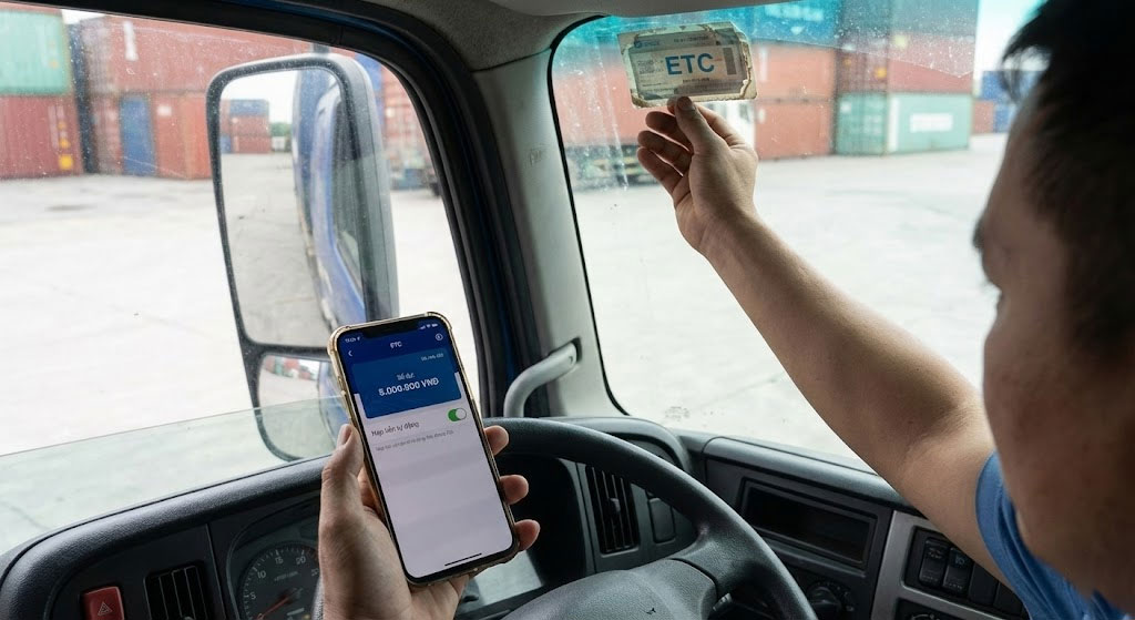 - Duy trì số dư tài khoản: Đối với xe container, mức phí qua trạm thường rất cao (loại 4, loại 5). Hãy luôn đảm bảo số dư trong tài khoản ETC đủ cho toàn bộ hành trình. Năm 2026, các ứng dụng đã có tính năng tự động nạp tiền từ tài khoản ngân hàng, bác tài nên kích hoạt tính năng này để tránh tình trạng “quên nạp tiền” gây tắc nghẽn tại trạm.
