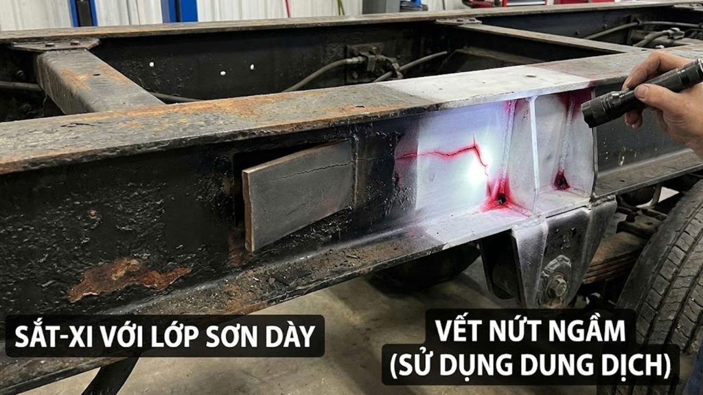 Trong vận tải hàng nặng, khung gầm (sắt-xi) được coi là “xương sống” của cả đoàn xe. Qua thời gian dài vận hành dưới tải trọng cực lớn và điều kiện đường xá gồ ghề, hiện tượng mỏi kim loại là không thể tránh khỏi. Nguy hiểm nhất không phải là những vết gãy lớn có thể nhìn thấy, mà là những vết nứt ngầm (hairline cracks) – những vết nứt li ti chỉ bằng sợi tóc nhưng là mầm mống cho những tai nạn gãy dầm rơ moóc thảm khốc.