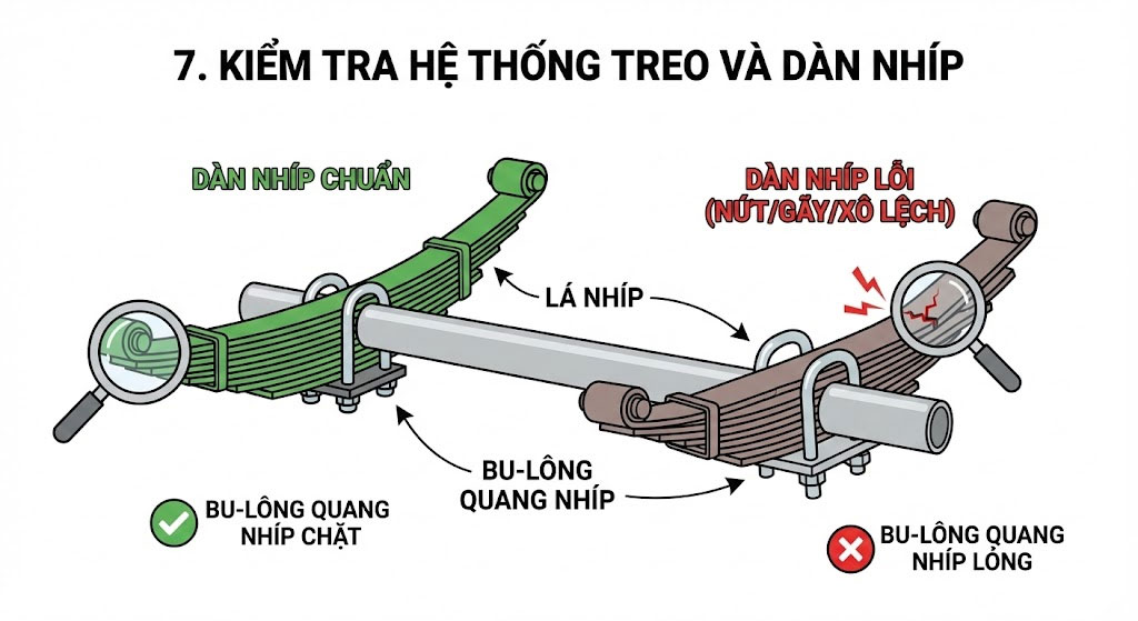 7. Kiểm tra hệ thống treo và dàn nhíp
