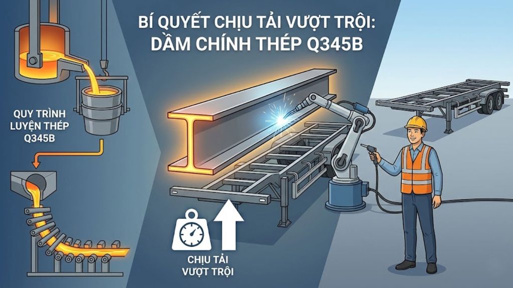 Trong ngành công nghiệp chế tạo sơmi rơmoóc và kết cấu thép, “dầm chính” được ví như xương sống của toàn bộ phương tiện. Để một chiếc xe có thể cõng trên mình hàng chục tấn hàng hóa băng qua những cung đường khắc nghiệt, chất liệu tạo nên bộ khung gầm đó phải cực kỳ đặc biệt. Tại Tân Thanh, thép Q345B đã trở thành tiêu chuẩn vàng.