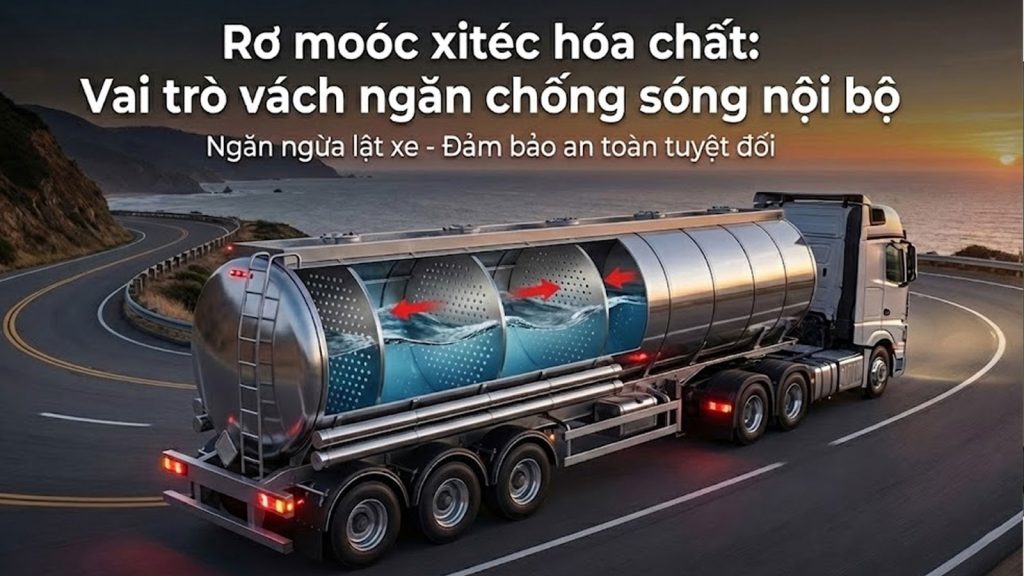Để kiểm soát hiện tượng này, các dòng sơ mi rơ moóc xitéc chuyên dụng bắt buộc phải trang bị hệ thống vách ngăn chống sóng (Baffles). Bài viết này sẽ phân tích cơ chế giảm lực quán tính và tầm quan trọng của vách ngăn đối với sự an toàn của đoàn xe khi vào cua đột ngột.