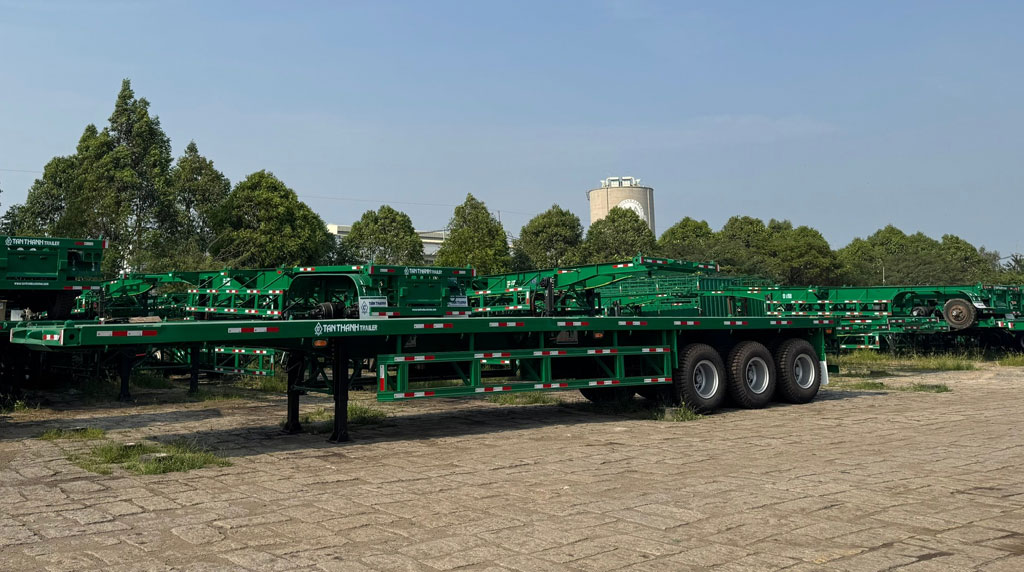 - Dầm mooc Tân Thanh: Được thiết kế với hệ số an toàn (Safety Factor) cao. Khi xe vào cua gắt hoặc phanh gấp với khối lượng hàng 30-40 tấn, dầm thép Q345B hấp thụ lực xoắn cực tốt, giữ cho xe cân bằng và tránh lật.