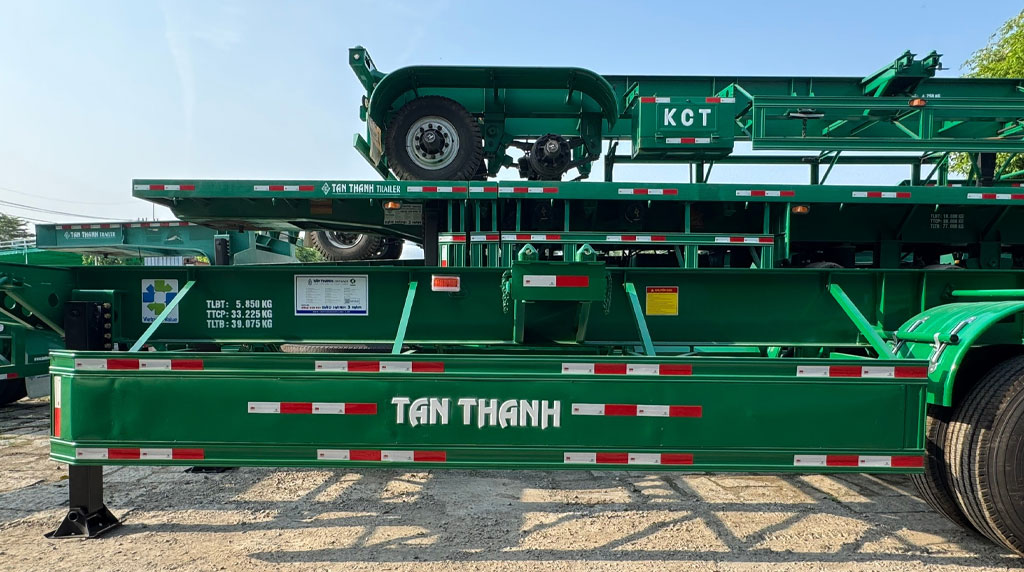 - Giảm thời gian nằm gara: Với các chi tiết được gia cường, mooc Tân Thanh rất ít khi gặp các sự cố gãy nhíp hay hỏng bạc chốt giữa hành trình, đảm bảo tiến độ giao hàng nông sản tươi.
