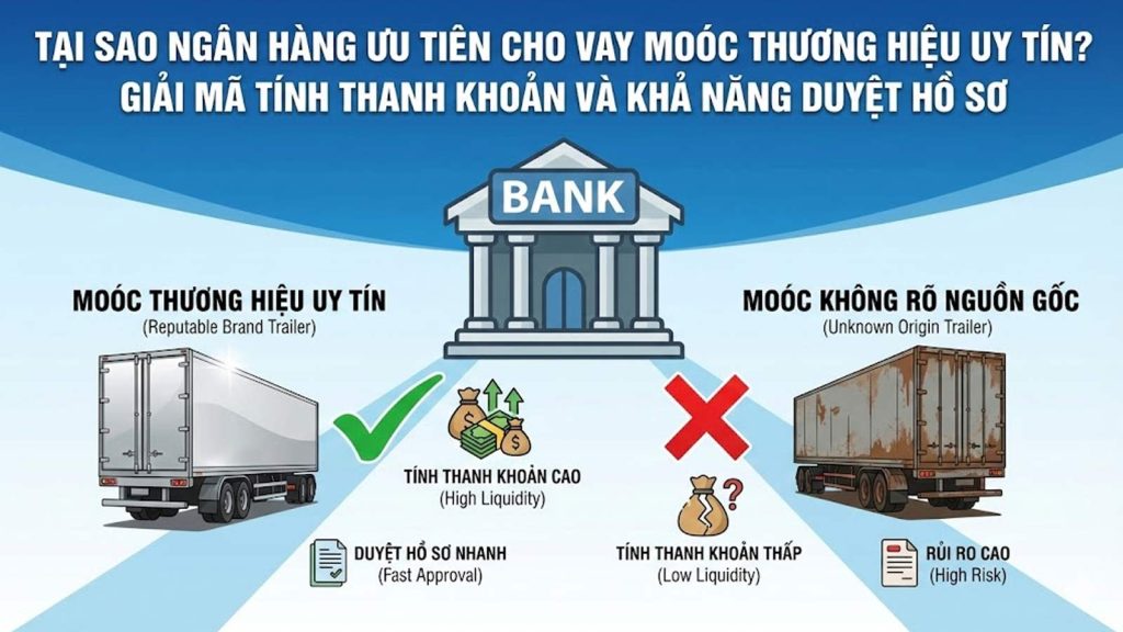 Trong kinh doanh vận tải, việc sử dụng đòn bẩy tài chính (vay vốn ngân hàng) là chìa khóa để mở rộng quy mô. Tuy nhiên, không ít chủ xe gặp khó khăn khi làm hồ sơ vay mua sơ mi rơ moóc (SMRM). Thực tế cho thấy, các ngân hàng và tổ chức tài chính luôn có sự ưu ái đặc biệt đối với các dòng moóc có thương hiệu uy tín như Tân Thanh. Tại sao lại có sự phân biệt này? Câu trả lời nằm ở “tính thanh khoản” và “độ an toàn của tài sản thế chấp”.
