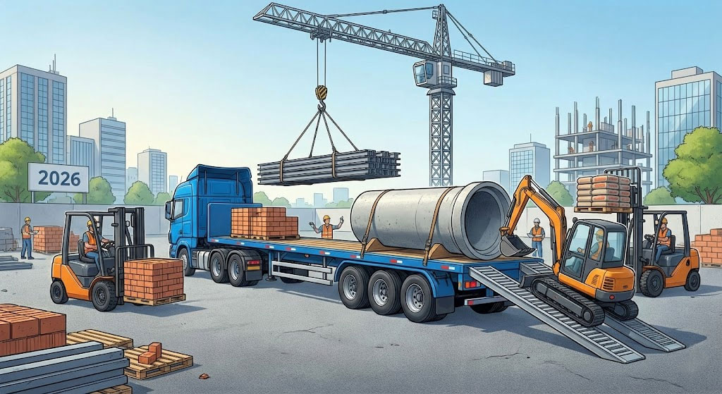 Vật liệu xây dựng thường có đặc tính rất nặng. Rơ mooc sàn năm 2026 được ứng dụng các tiêu chuẩn cơ khí mới nhất để đối phó với thách thức này: