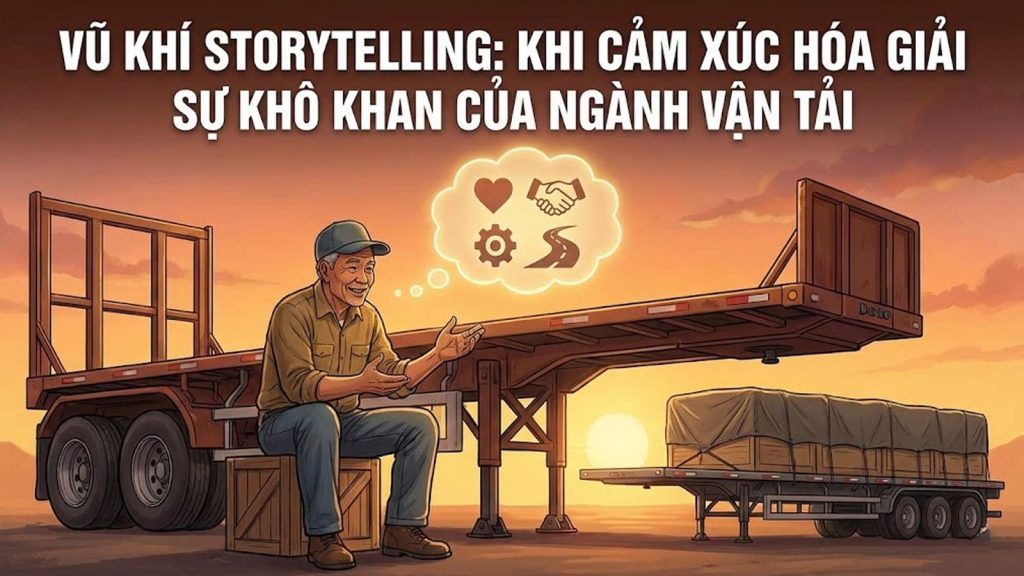 Trong kỷ nguyên số, khách hàng không chỉ mua một dịch vụ vận tải, họ mua “sự tin tưởng” và “sự kết nối”. Nếu Fanpage của doanh nghiệp bạn chỉ toàn những thông báo cước phí hay hình ảnh xe cộ vô tri, bạn đang bỏ lỡ cơ hội vàng để chạm đến trái tim khách hàng. Bằng cách sử dụng nghệ thuật kể chuyện (Storytelling) về những hành trình thực tế của dàn sơ mi rơ moóc (SMRM) trên Facebook, TikTok hay Zalo, bạn sẽ biến thương hiệu vận tải của mình trở nên có “hồn”, chân thực và đáng tin cậy hơn bao giờ hết.