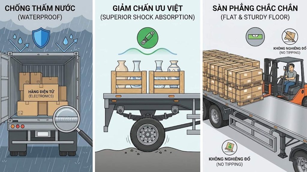 Mọi chủ hàng đều ám ảnh bởi 3 rủi ro lớn khi giao hàng cho đơn vị vận tải: Thấm nước, Va đập và Hư hỏng do rung chấn.