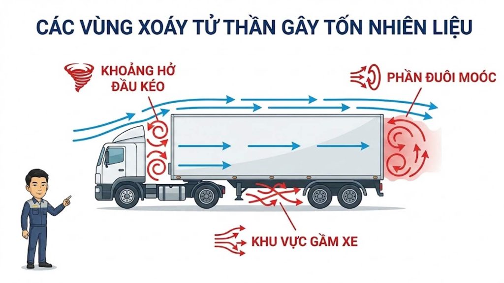 1. Phân tích các “Vùng xoáy tử thần” gây tốn nhiên liệu trên rơ moóc